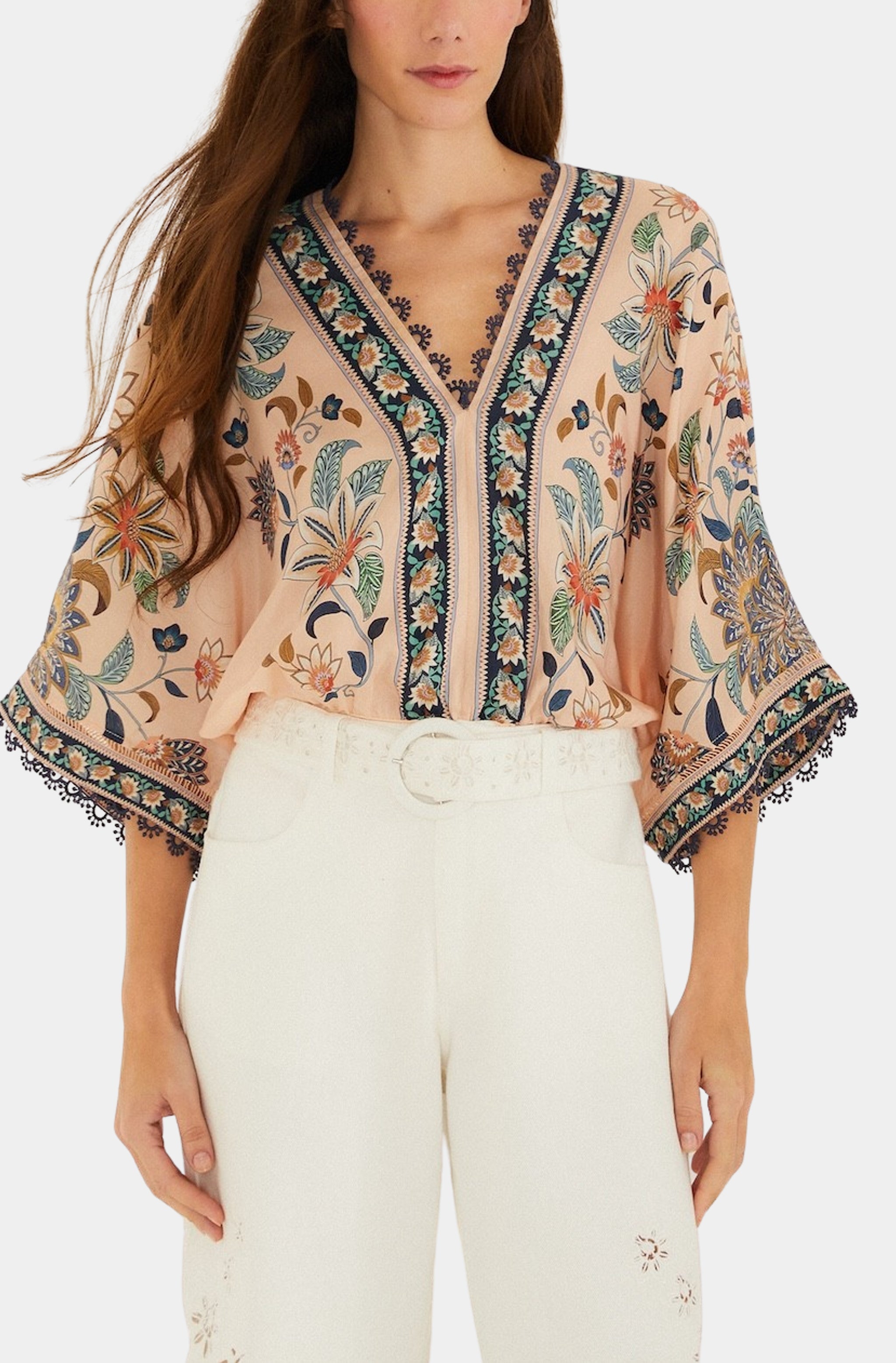 Farm Rio Boho Enchance Mocha Ties Blouse
