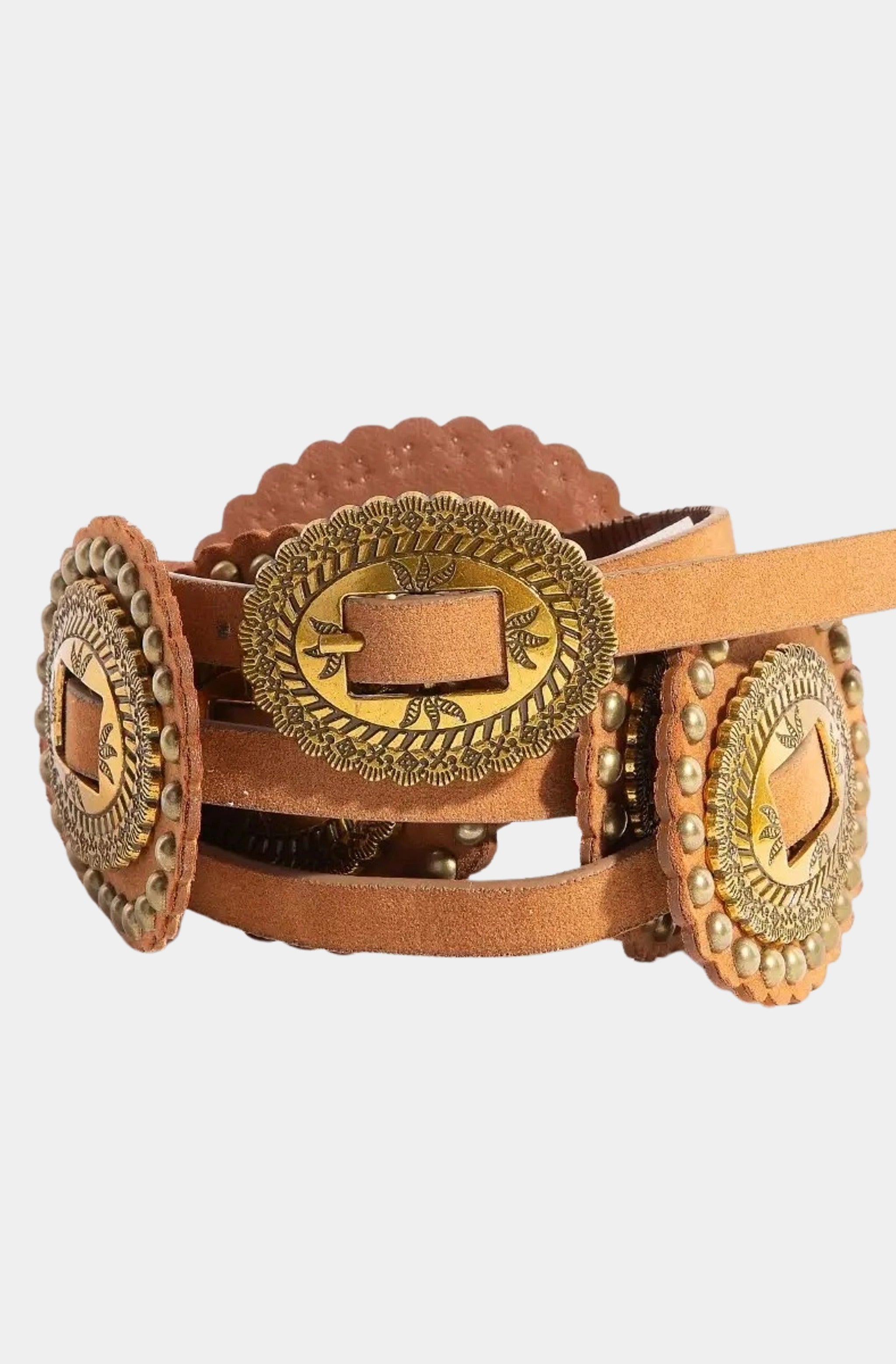 Intricate Western Concho Vegan Leather Belt