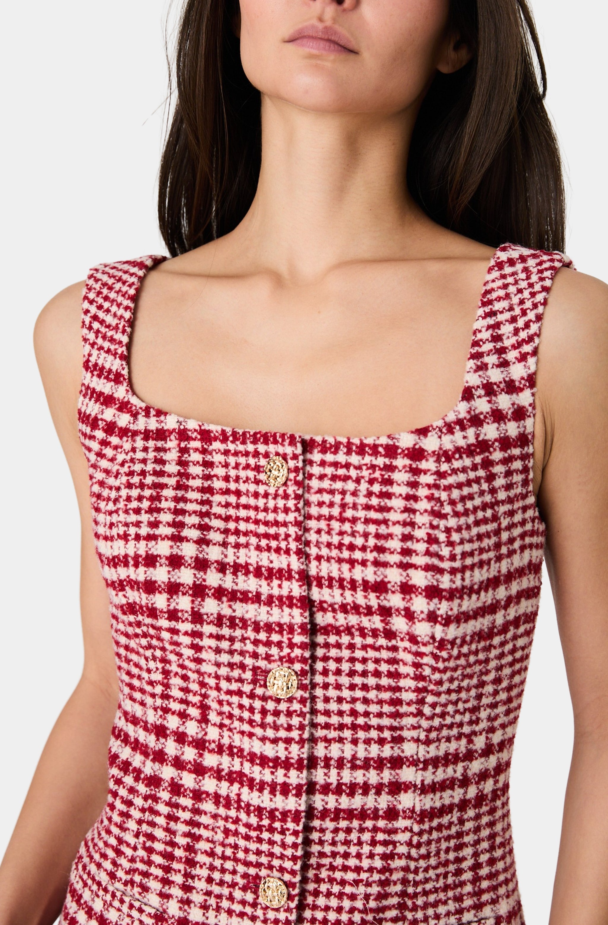 Square Neck Button Front Mini Dress